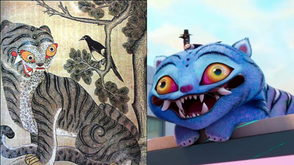 Pintura popular Minhwa – O Tigre e a Pega | Foto: K-pop Demon Hunters/Netflix