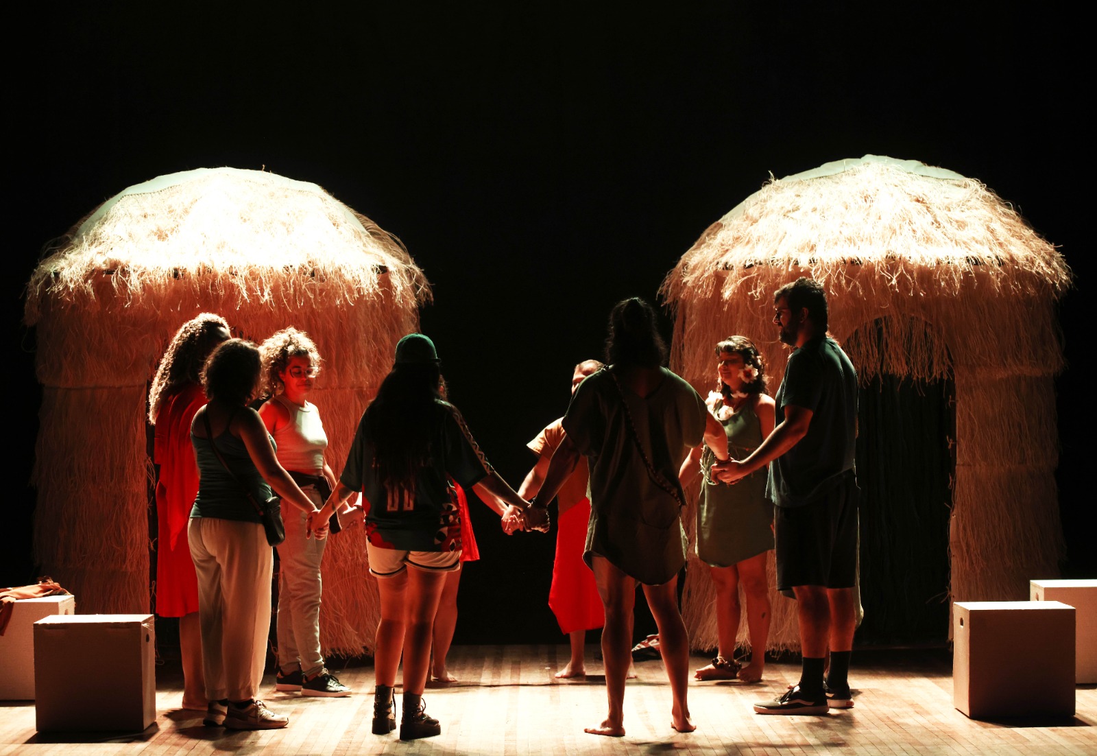 O espetáculo tem elenco inteiramente indígena, reunindo artistas como Pri Gomes (Disney+, Star+), Sendí Baré (Netflix), Eli Correa (mestre em Artes Cênicas pela UNIRIO), João Raphael (Armazém da Utopia) e o manauara Ruan Viana, responsável também pela preparação corporal.