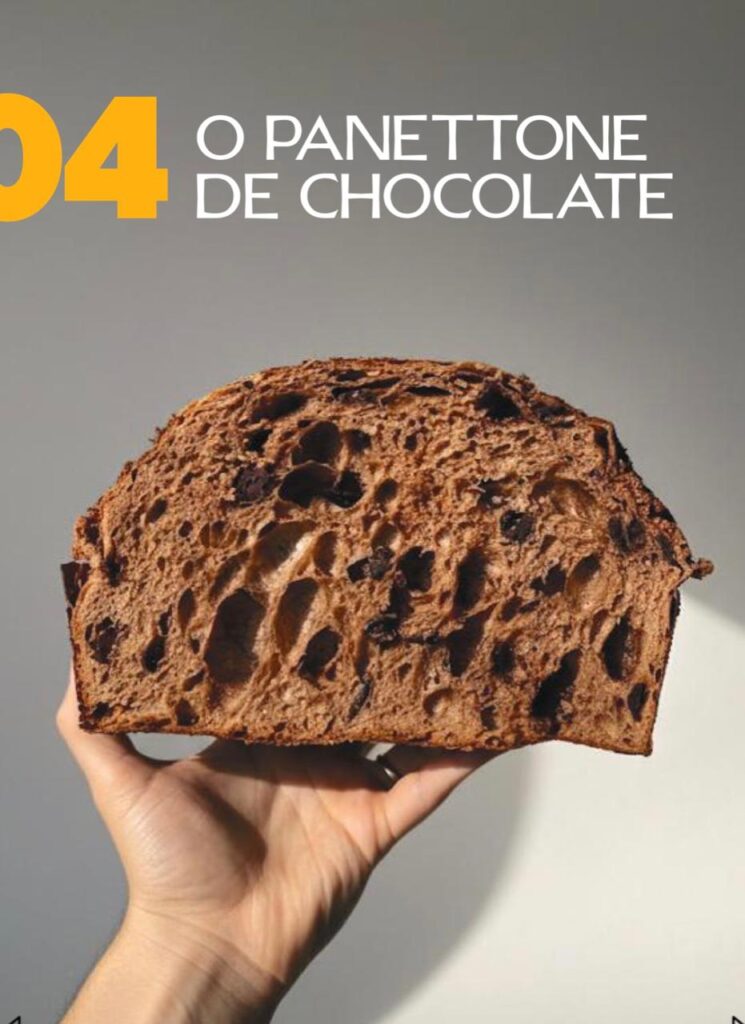 O Panettone de Chocolate que encantou o júri tem massa leve e aveludada, elaborada com fermentação natural (lievito madre) e ingredientes selecionados. As lascas de chocolate na massa liberam notas densas e amargas, contrastando com a cremosidade do chocolate ao leite, que garante suavidade e equilíbrio.