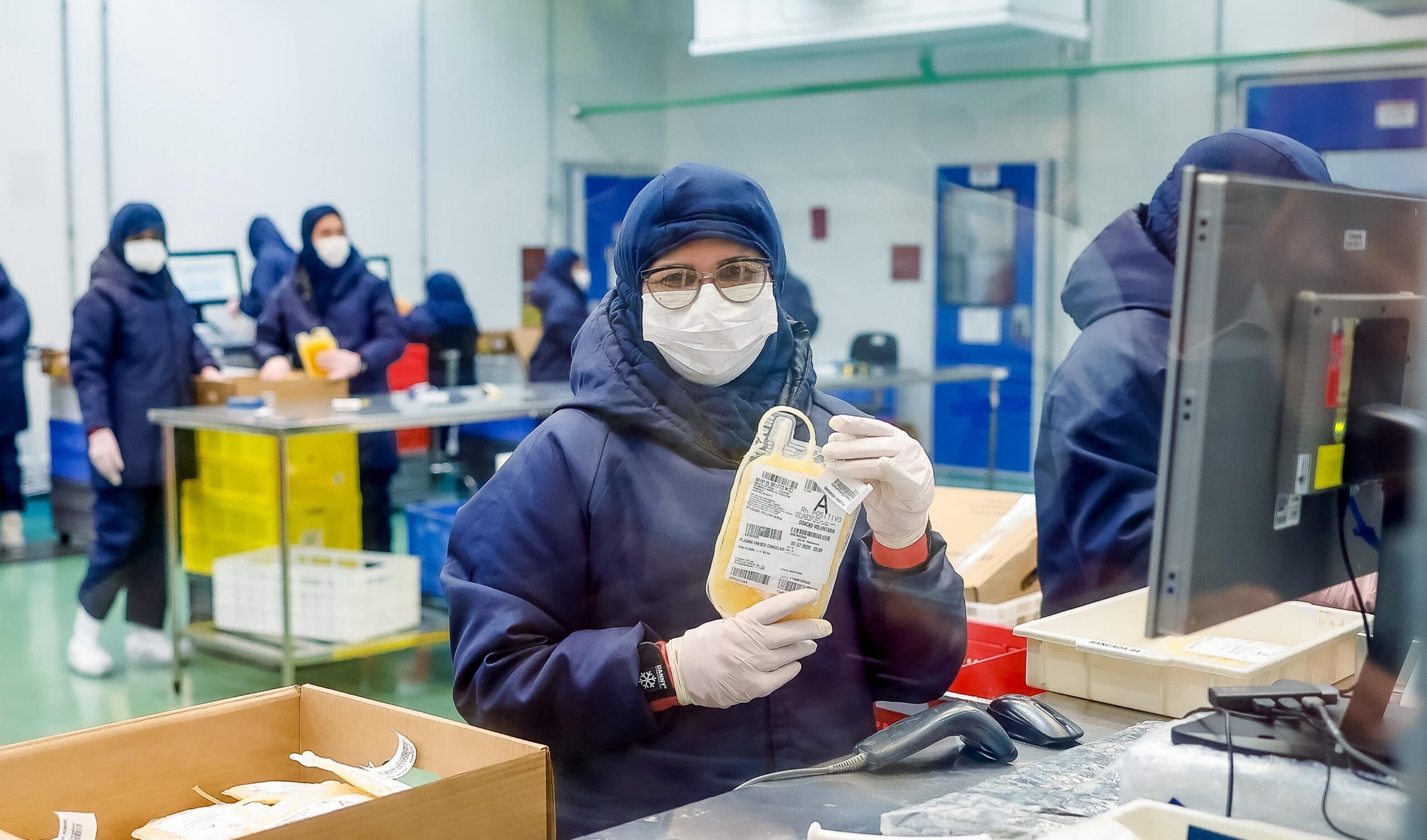 Funcionária da nova fábrica da Hemobrás em Goiana (PE) manuseia bolsa de plasma para produção de albumina e imunoglobulina Foto: Ricardo Stucket
