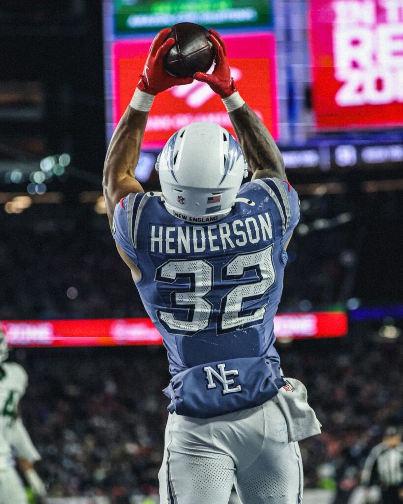 O terceiro quarto começou movimentado: Henderson marcou seu terceiro touchdown na partida, dessa vez recebendo um passe perfeito de Drake Maye. Ponto extra convertido e vantagem ampliada para 21–7.