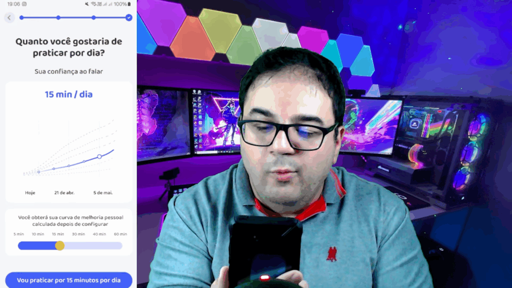 O Prátika recomenda sessões diárias de 15 a 30 minutos, mas deixa que o aluno ajuste o tempo conforme a disponibilidade. Outra função permite ativar ou desativar traduções durante conversas com tutores virtuais, oferecendo uma experiência mais imersiva para quem busca contato direto com o idioma.