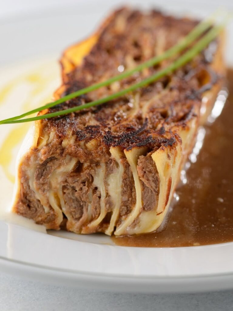 O cardápio inclui ainda o Pollo alla Parmigiana con Risotto al Parmigiano, que harmoniza frango empanado crocante com risoto cremoso de parmesão, e a Lasagne Sfogliate al Forno, preparada com camadas finas de massa, molho béchamel e roti, resultando em um sabor rico e encorpado. Já o Risotto di Baccalà Albicocche surpreende pelo contraste entre o salgado do bacalhau e a leve doçura dos damascos e laranjas cristalizadas, compondo um prato aromático e equilibrado.