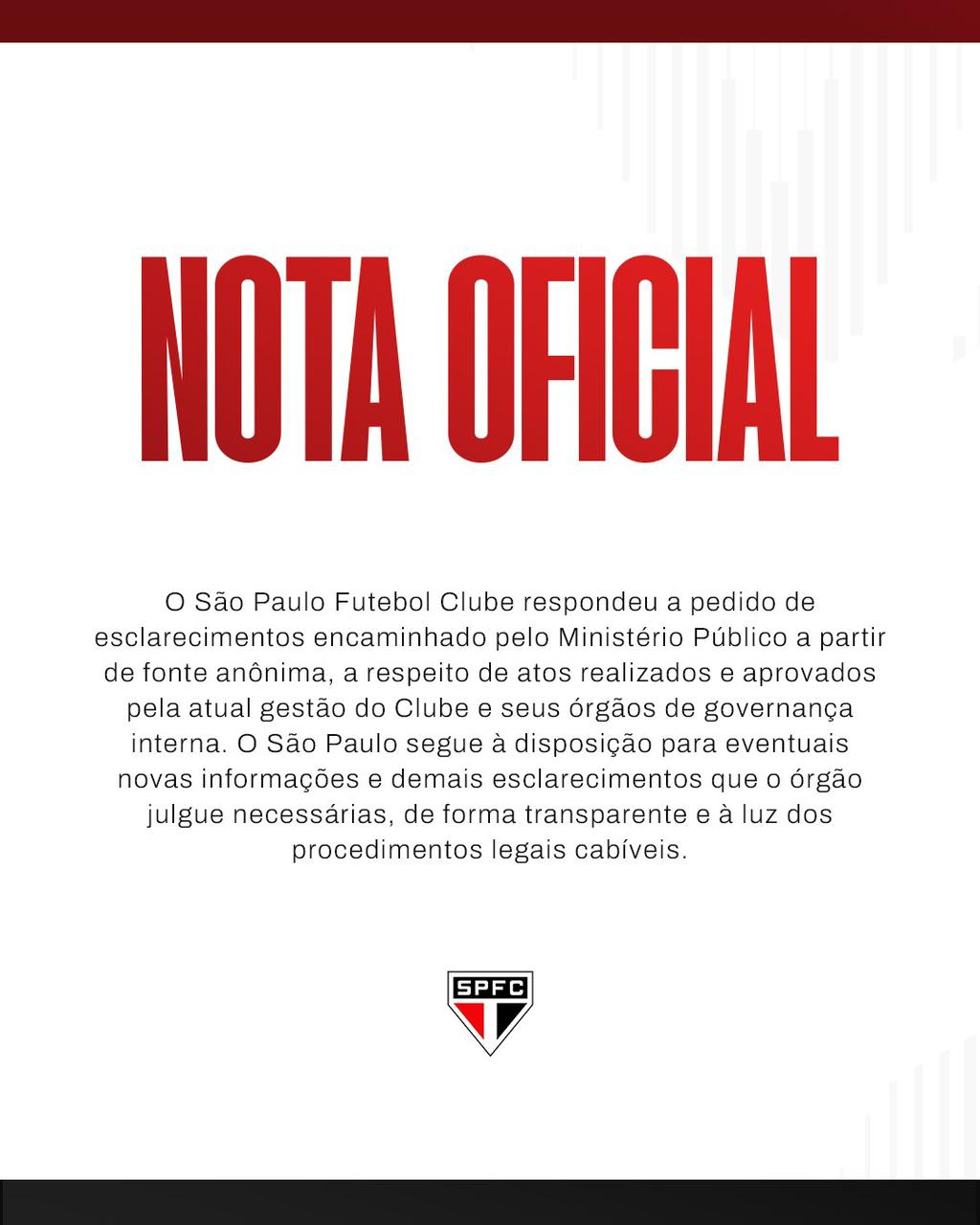O clube se manifestou através de uma nota oficial: