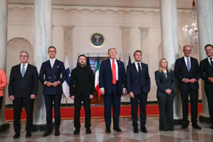 Presidente dos EUA, Donald Trump, recebe líderes europeus na Casa Branca. 18/08/2025 (Foto: Andrew Caballero-Reynolds/AFP)...